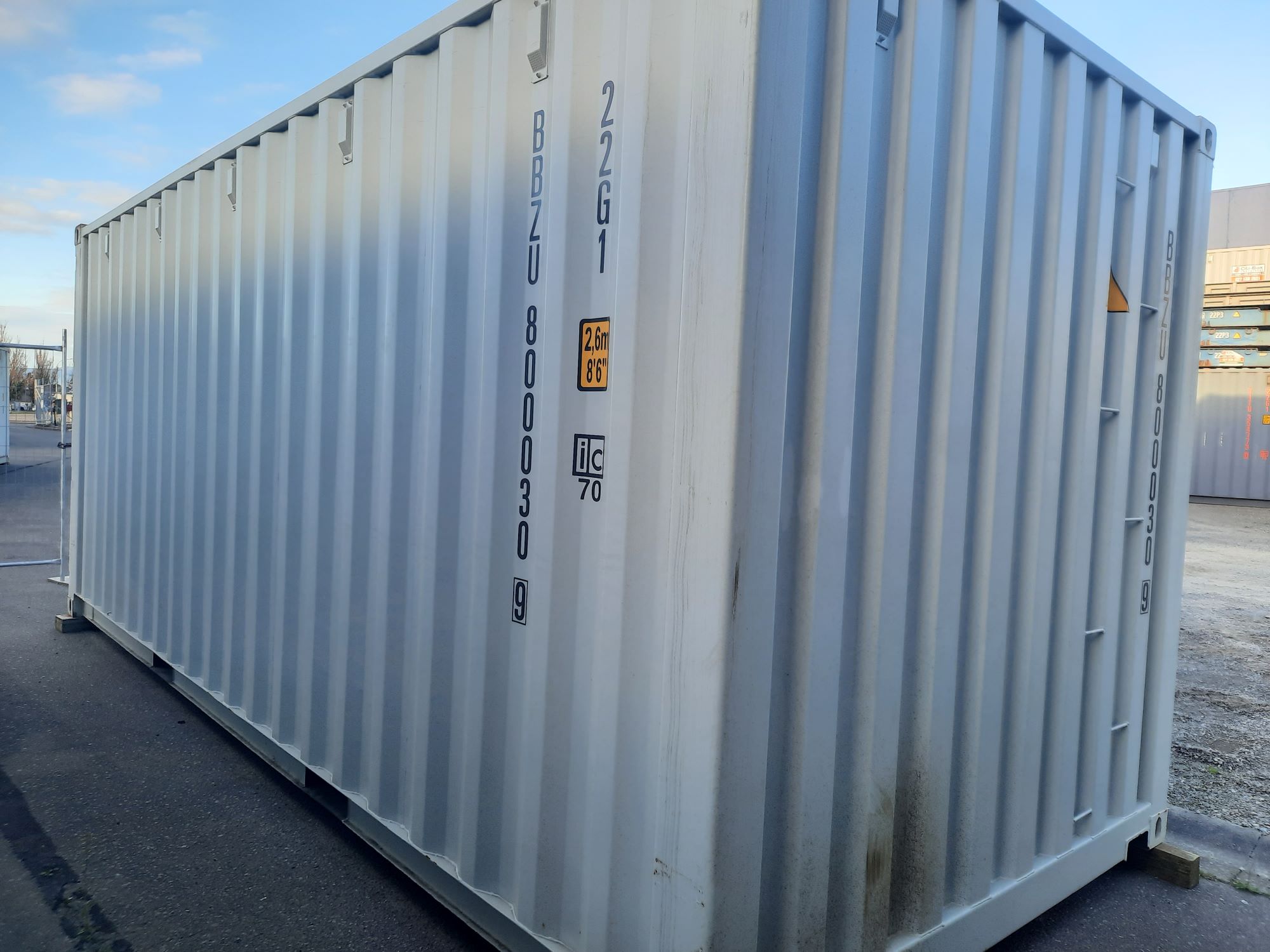 In stock now, these 20′ shipping containers are in near new condition, having only done one trip (new ex factory from overseas port). They are a great general purpose storage container, factory fitted with 8, 10 or 12 of the equalizing vents and also a lock box for added security for your padlock; waist-high handles with rubber grips. Also available in green, blue, mid grey, dark grey and beige.