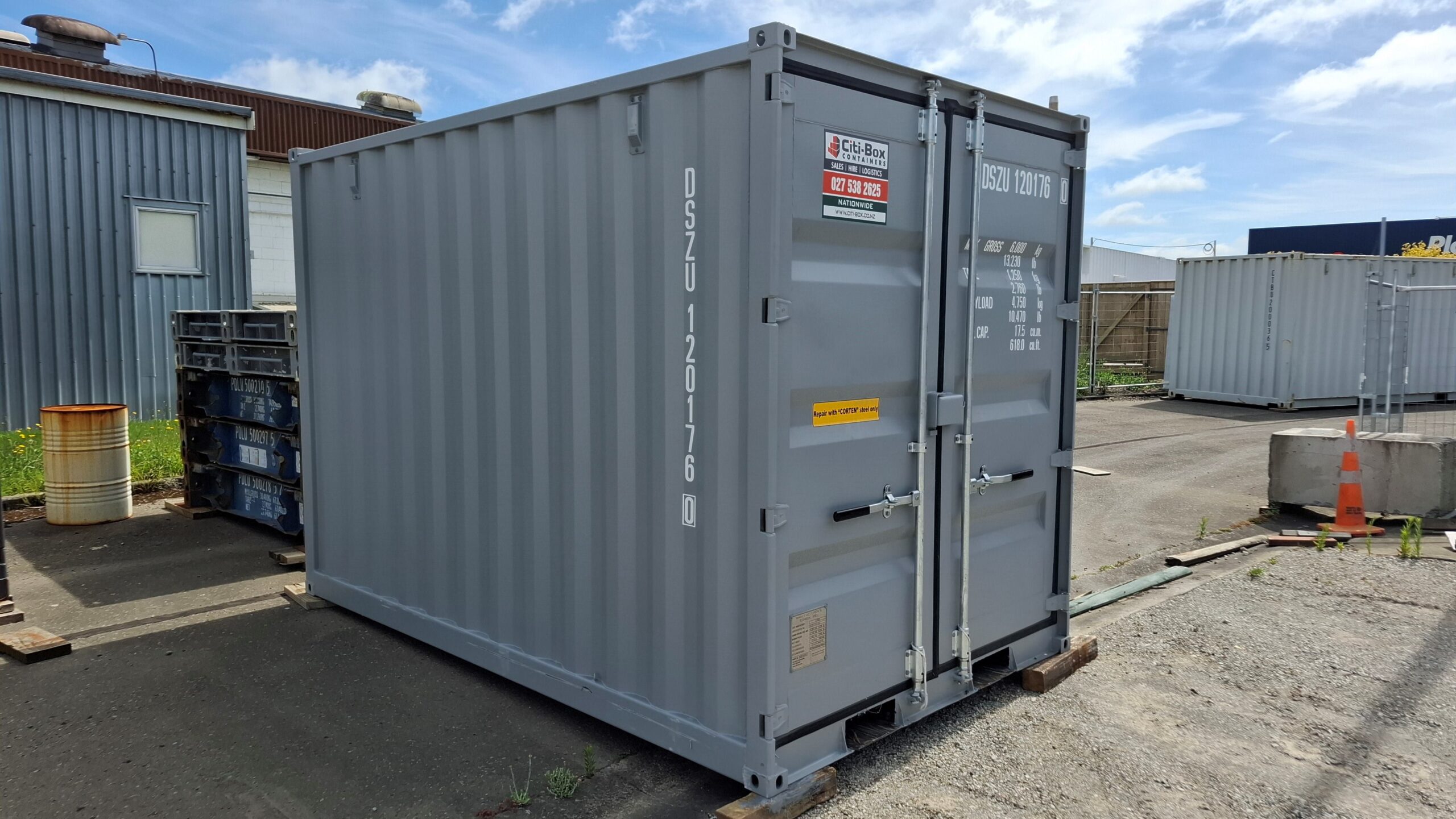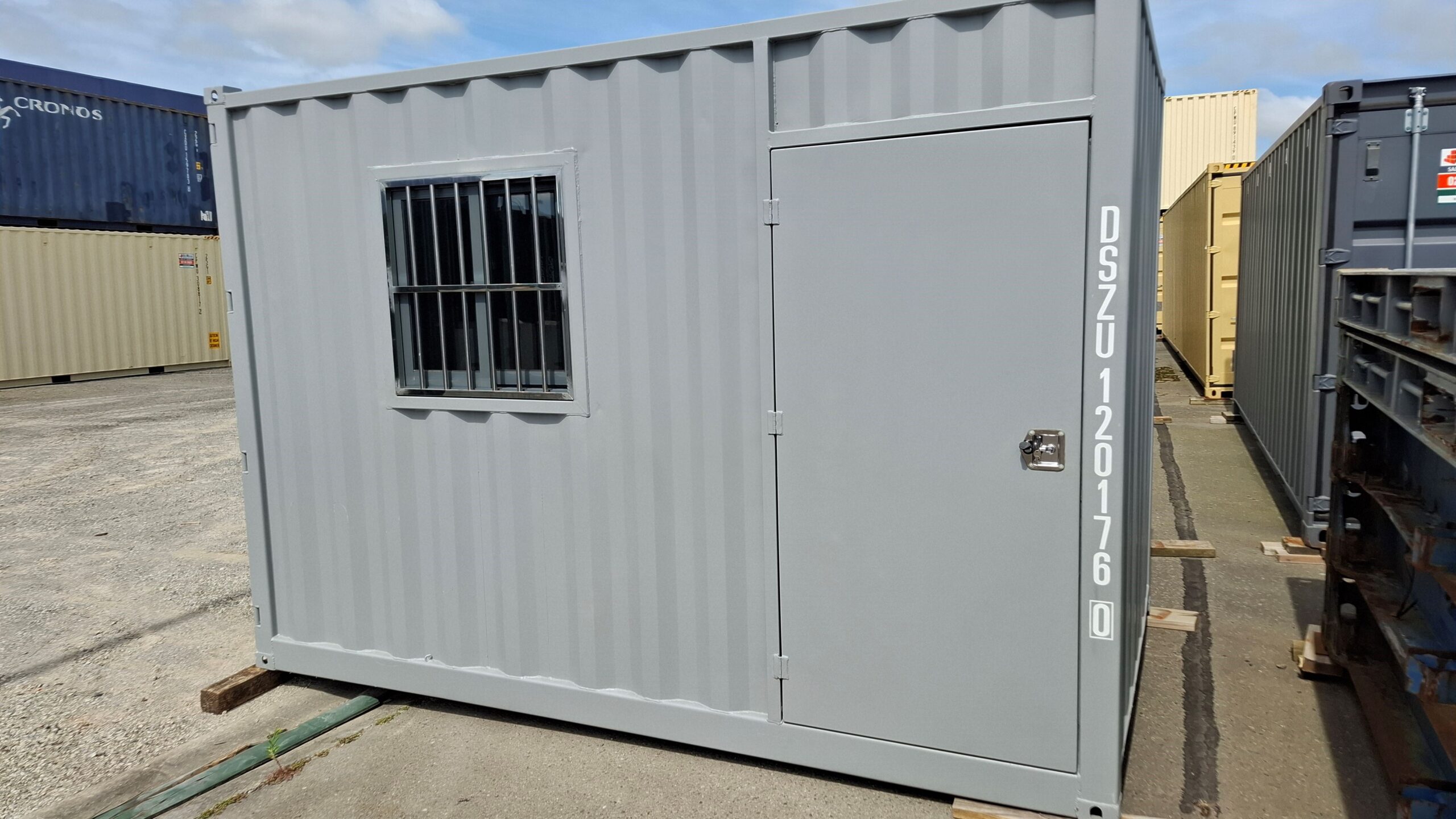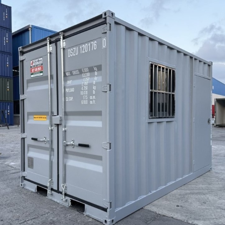 A lockable side-access steel door provides easy walk in and out, whilst the full-opening end container doors enable access for large items to be moved in and out when required.