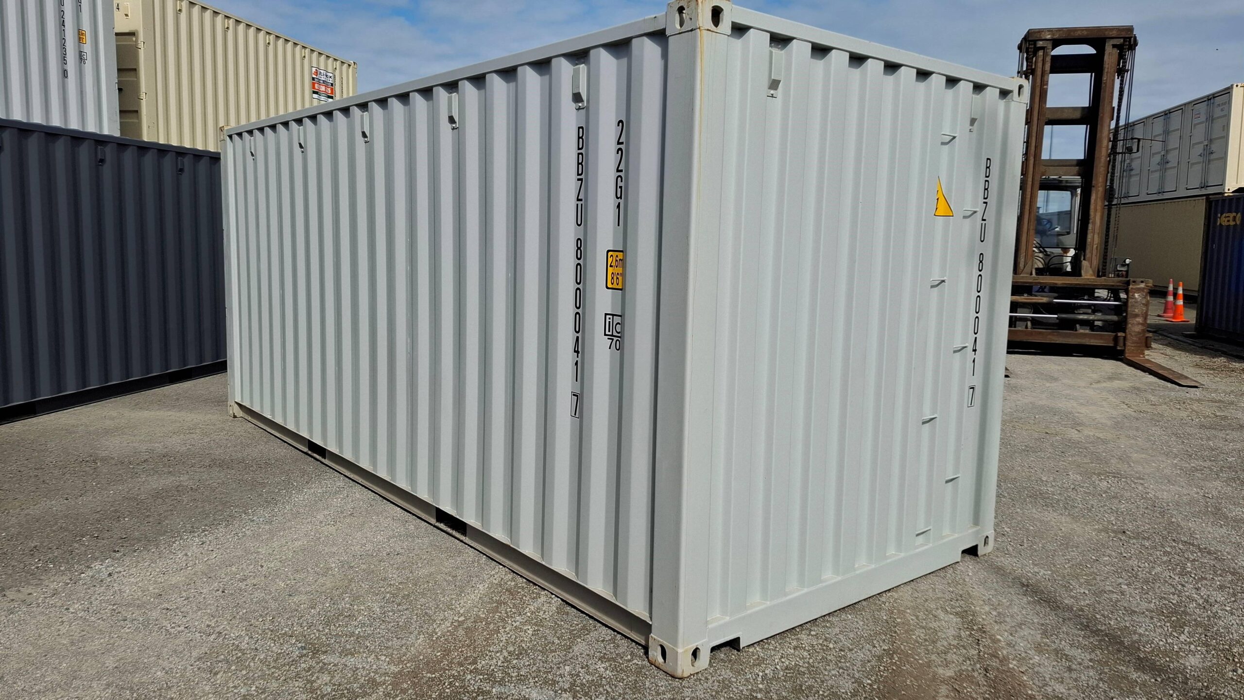 In stock now, these 20′ shipping containers are in near new condition, having only done one trip (new ex factory from overseas port). They are a great general purpose storage container, factory fitted with 8, 10 or 12 of the equalizing vents and also a lock box for added security for your padlock; waist-high handles with rubber grips. Also available in green, blue, mid grey, dark grey and beige.